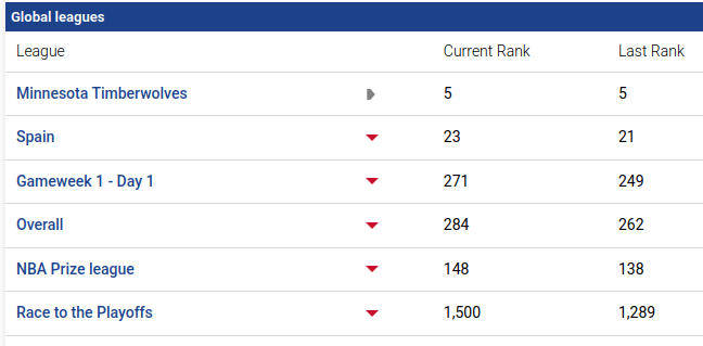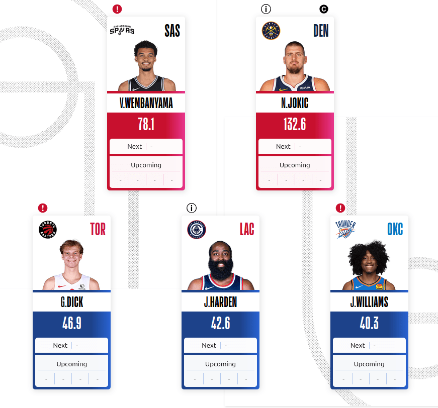 Wemby (24/13/3 with 3 steals and 9 blocks) and Jokic (28/14/13) as the captain lead my team to a huge gameday. Also Dick, Harden and JDub did a great job by getting some fps (fantasy points).